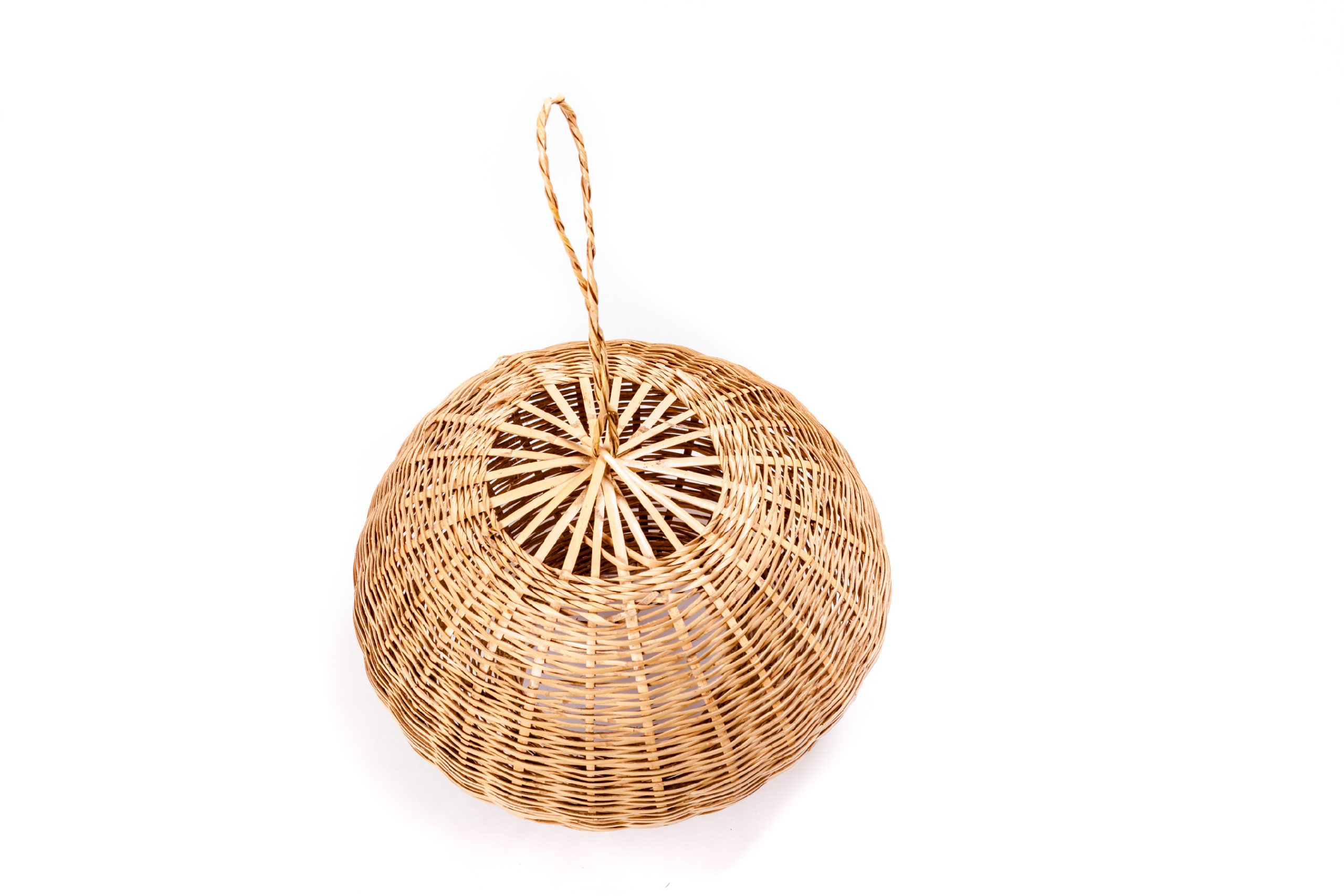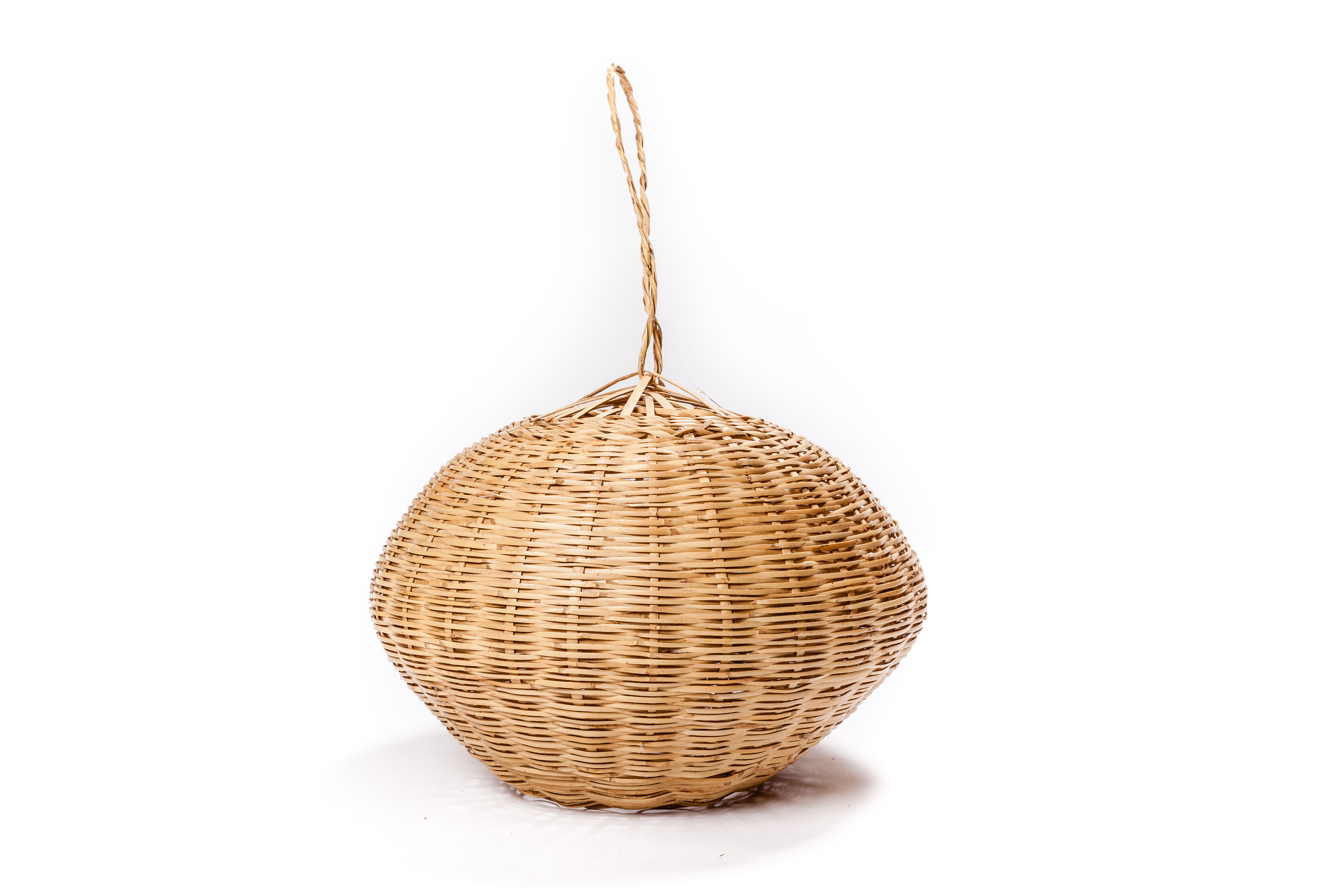 Feito em cana com argolas para pendurar